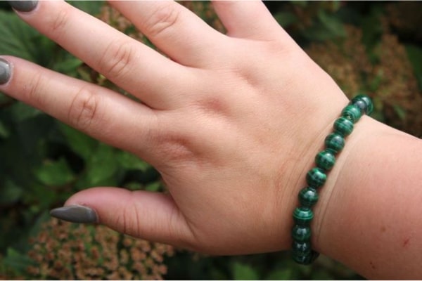 De stenen zijn 8 mm in doorsnee en geregen op stevig elastiek.
