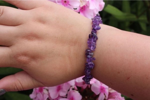 Mooie armband met Amethistsplit van A-kwaliteit, geregen op stevig elastiek.
