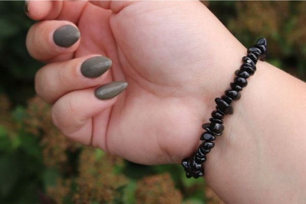 Mooie armband met split van zwarte Toermalijn, geregen op stevig elastiek.