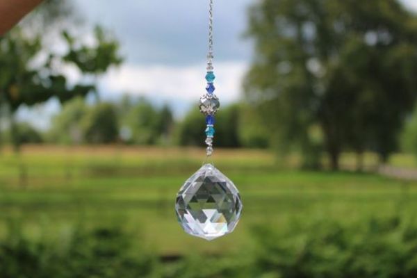 Eenvoudige, maar mooie zonnevanger met glasprisma en gekleurde glaskralen