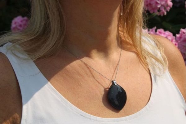 Prachtige hanger van Labradoriet (AA-kwaliteit). De hanger is tussen de 35 en 45 mm groot. De steen komt uit Madagaskar.