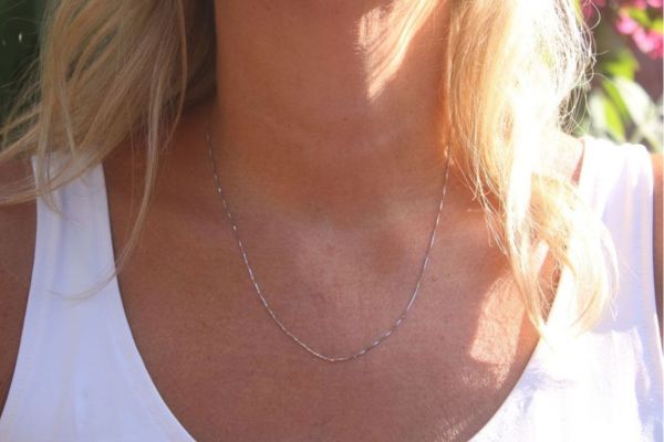 De lengte van de ketting is circa 45 cm.