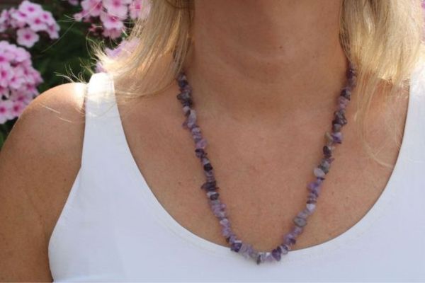 De lengte van deze mooie ketting is ongeveer 60 cm en bevat een zilverkeurige sluiting.